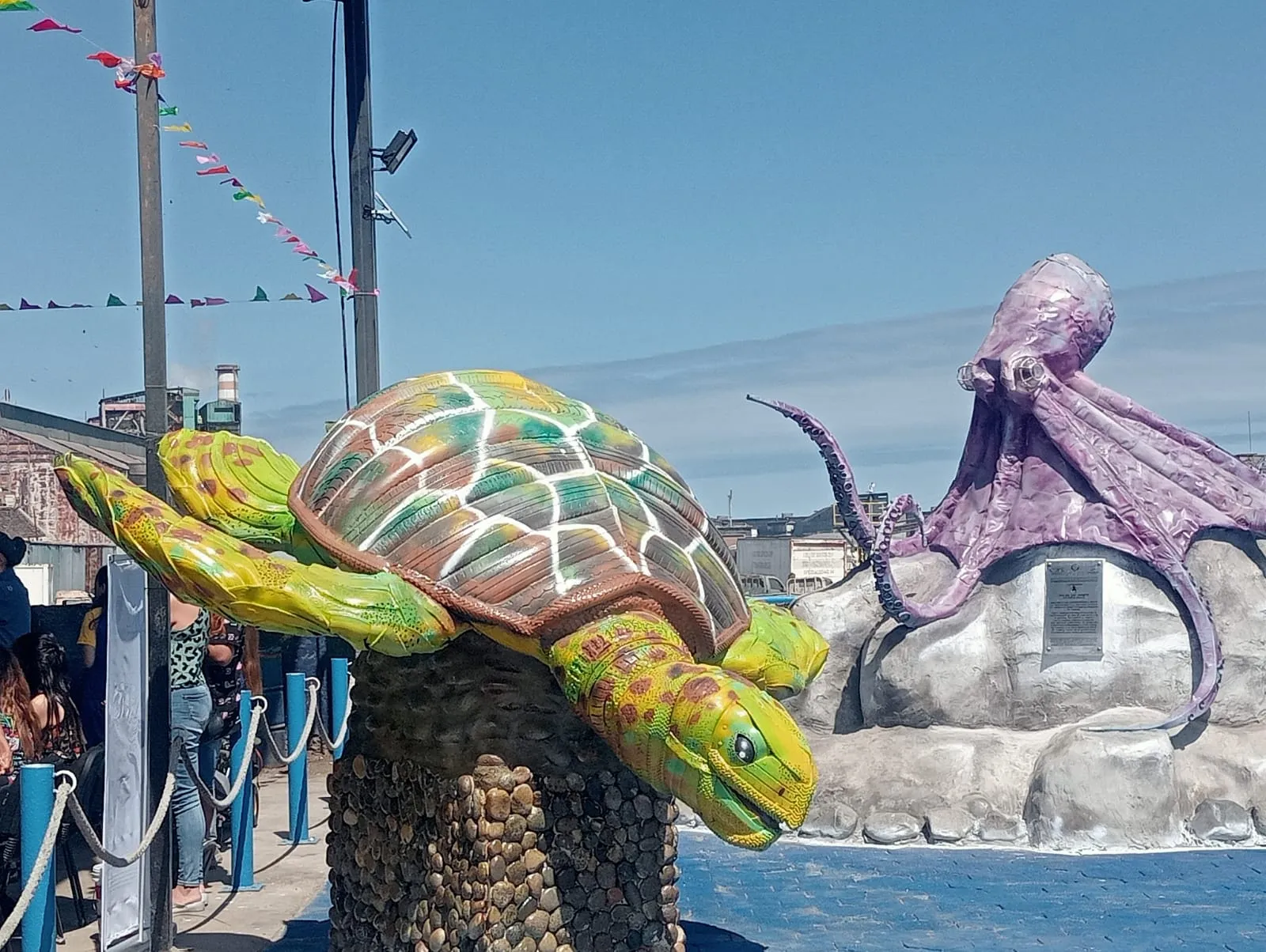 “La verdad es que estamos muy contentos, costó bastante llegar a este resultado, pero finalmente conseguimos el objetivo principal que fue recuperar un nuevo espacio para el turismo de Tocopilla. La idea es que las familias vengan, cuiden este espacio, se tomen fotografías, aprovechen de conocer el muelle, los locales. Esto está en una economía circular, por decirlo de alguna manera. Nosotros somos, por decirlo así, escultores aficionados, venimos desde pequeños realizando esculturas, Tocopilla es muy conocido por eso y fuimos desarrollando técnicas. Por nuestras profesiones logramos construir estas esculturas, que es la primera vez que realizamos con este tipo de materiales, pero afortunadamente todo resultó satisfactorio”, mencionó Alexis Peña de Tocopillarte, quien además agregó que “en la Plaza del Reciclaje quisimos sistematizar cada una de las figuras con distintos tipos de materiales en desuso que generalmente hay en la comuna. Entonces se utilizaron neumáticos para la tortuga, la albacora con acero reciclado, el pulpo con plástico y creemos que esta es una de las plazas que es única no solo en el norte, sino que en Chile”.