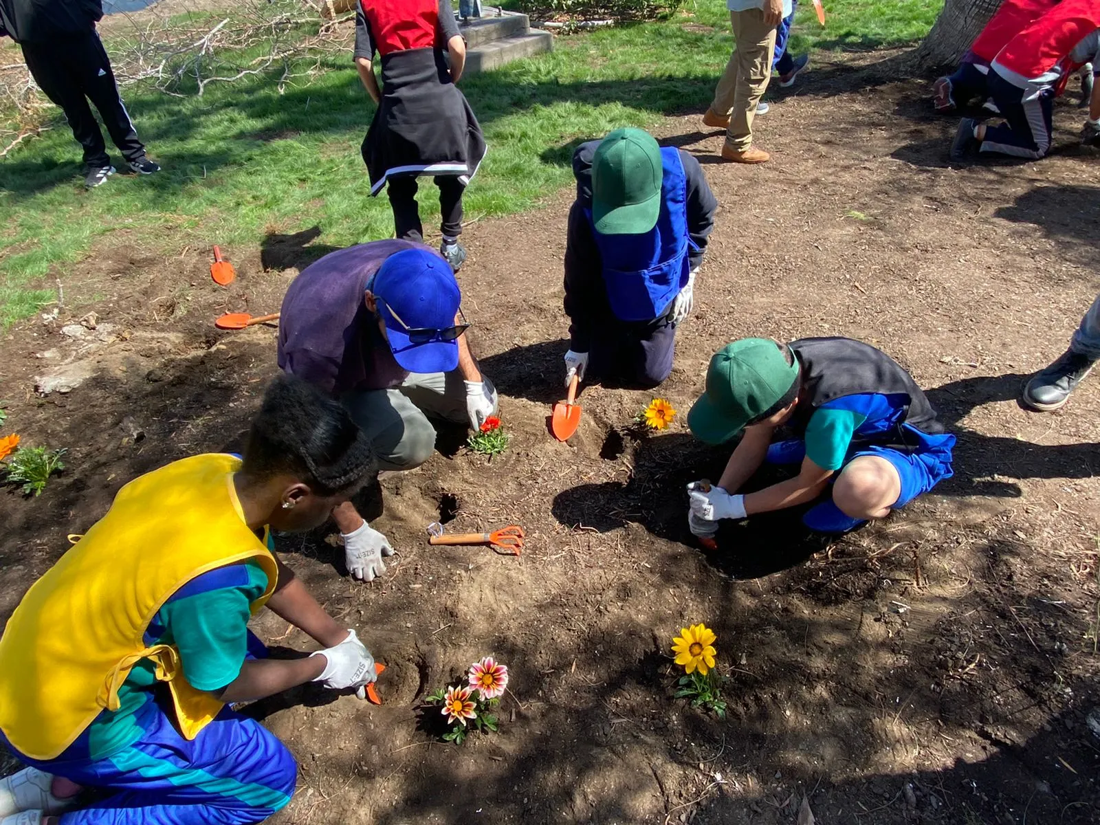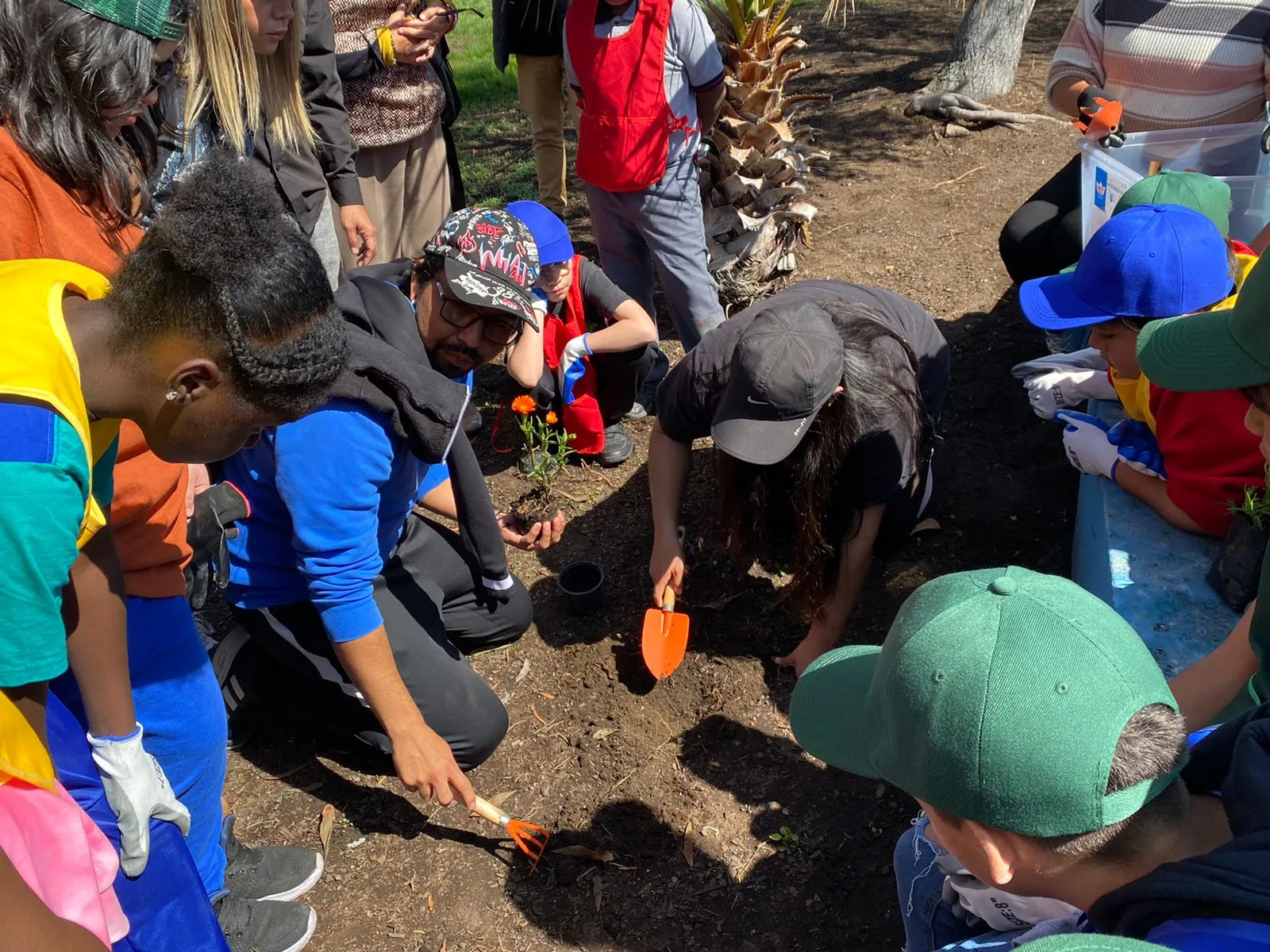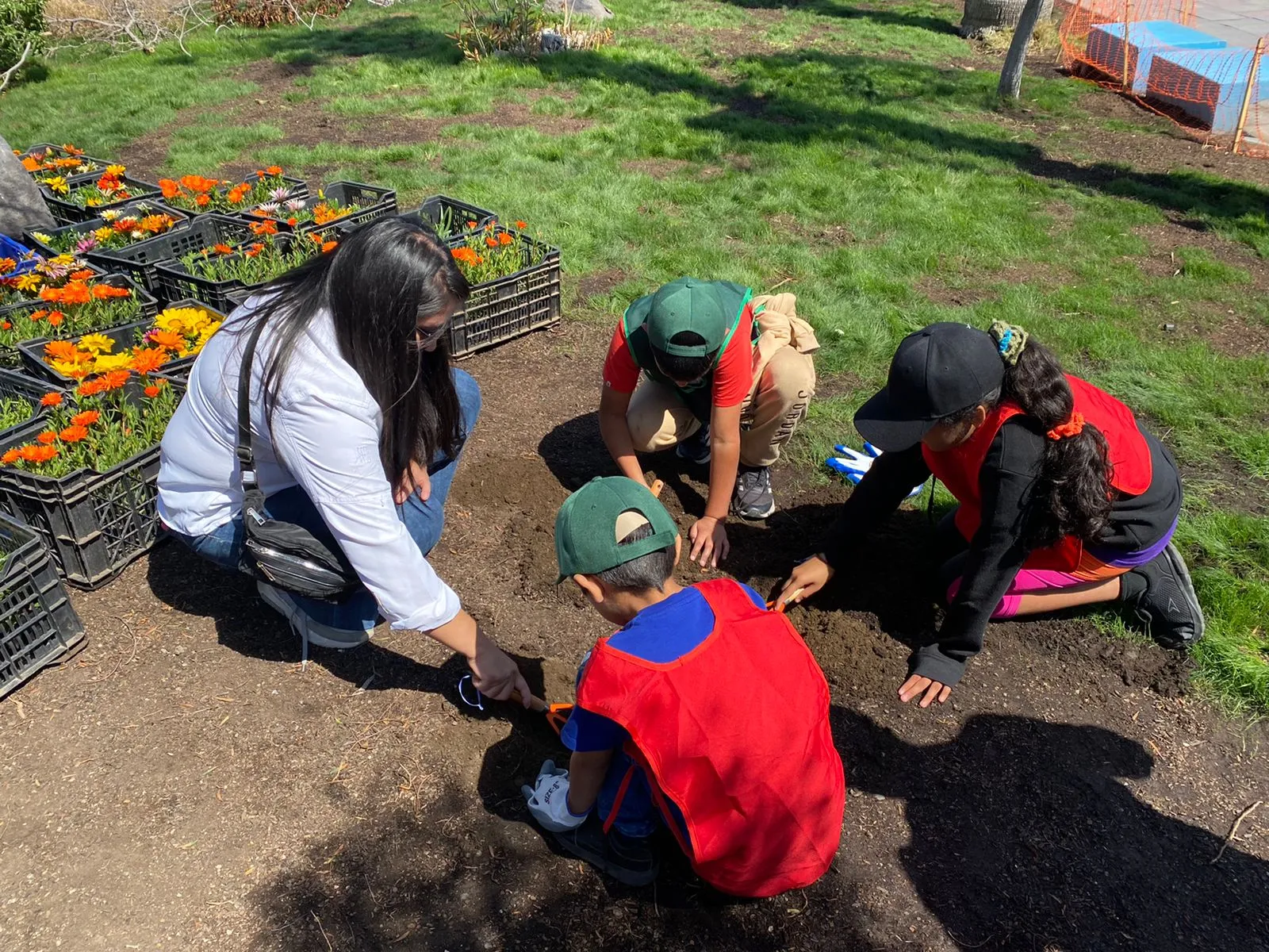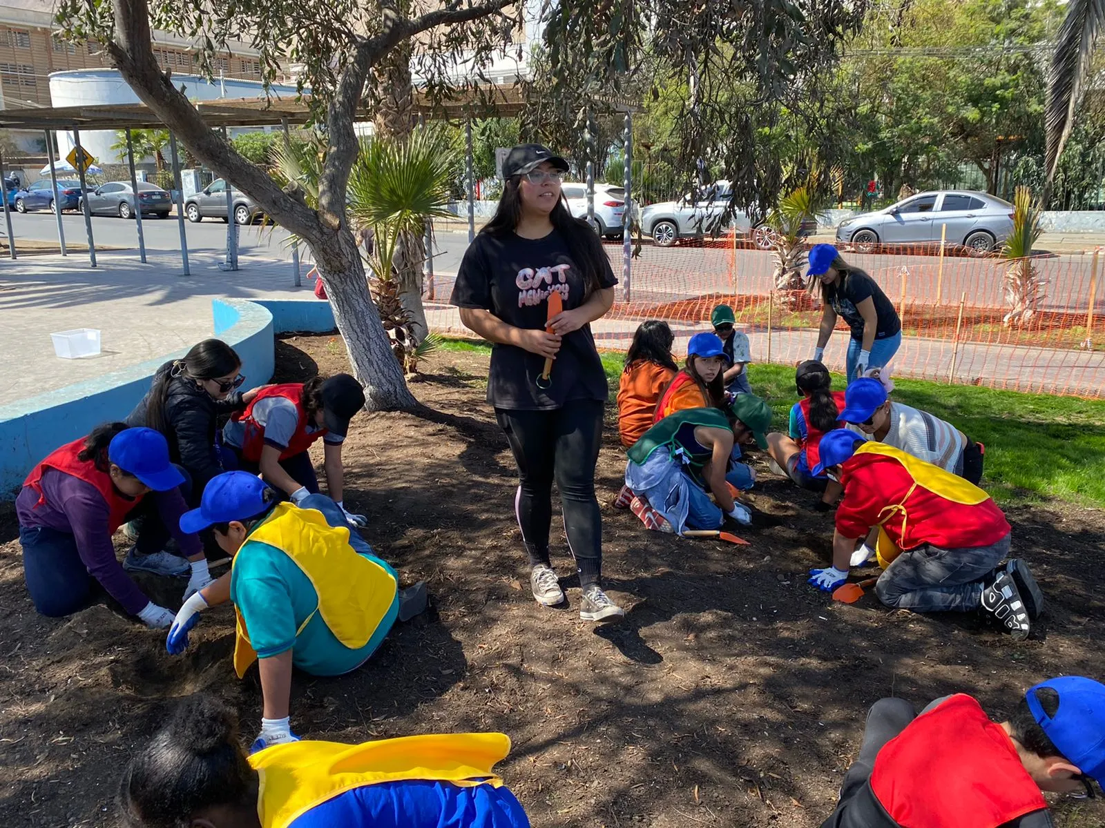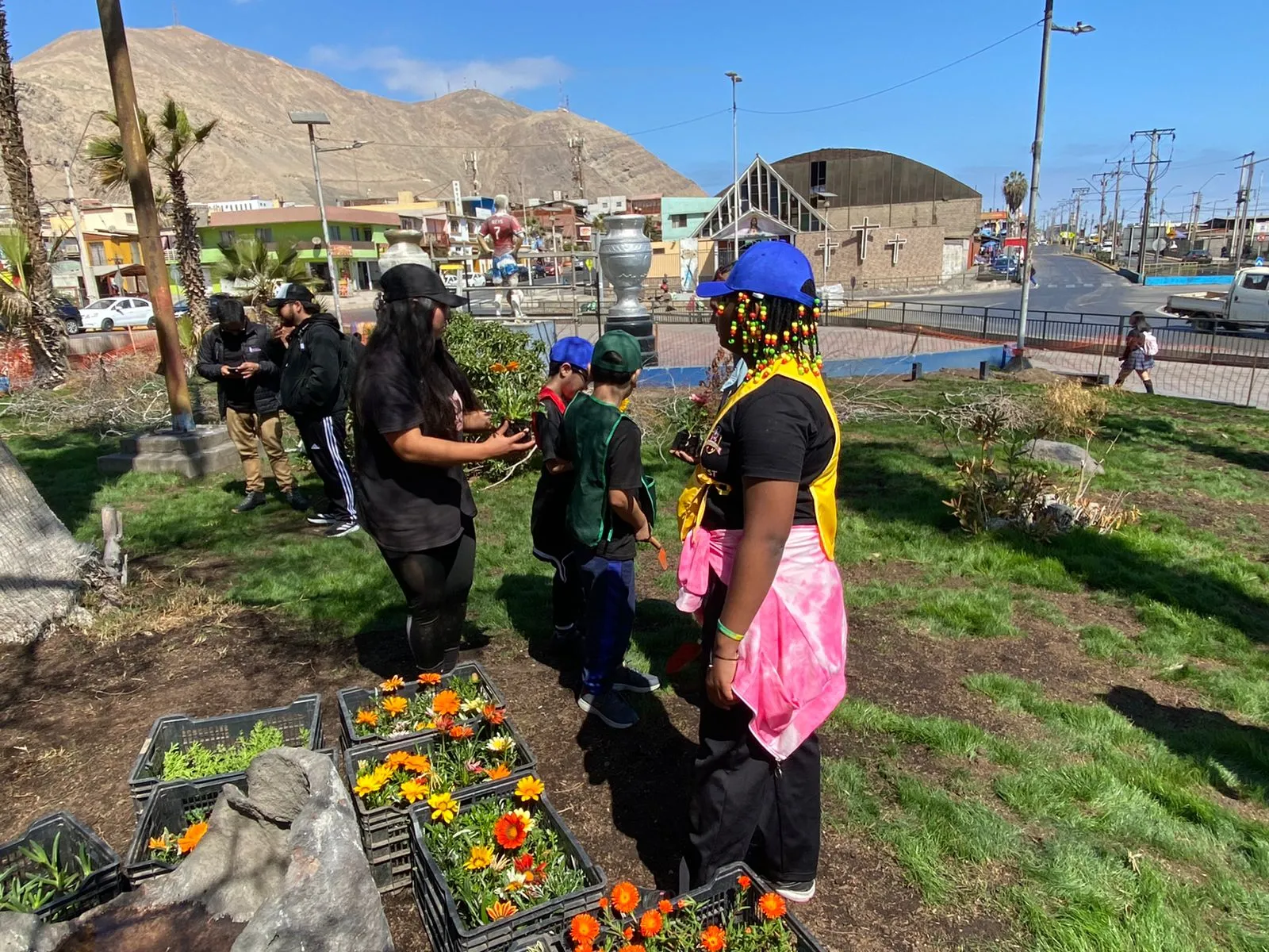 En la actividad se promovió el cuidado y el respeto por el medio ambiente a las y los más pequeños a través de la educación ambiental, y es por ello que un grupo de estudiantes plantaron, con el equipamiento adecuado, especies de flora aptas a las condiciones climáticas de la zona para hermosear nuestra querida plazoleta
