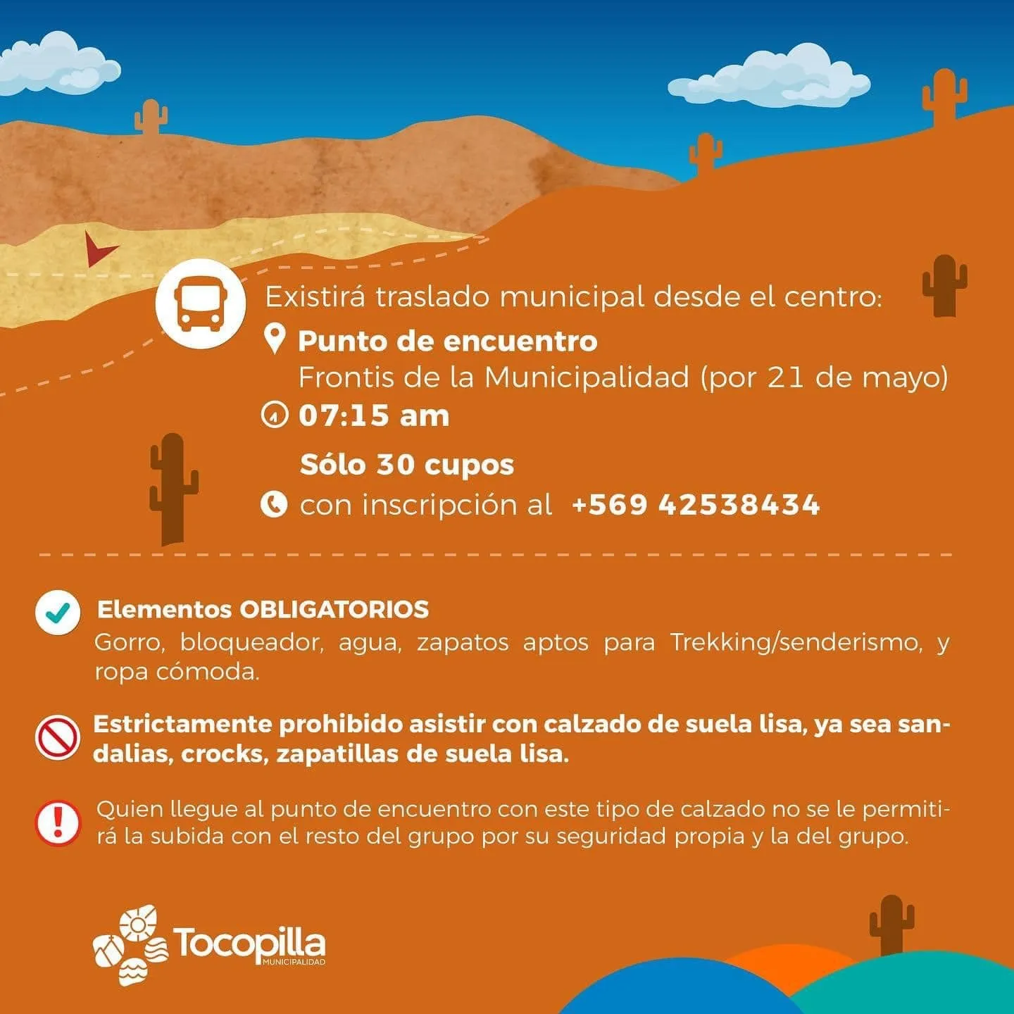 No olvides que para esta actividad es esencial llevar bloqueador, gorro y agua.