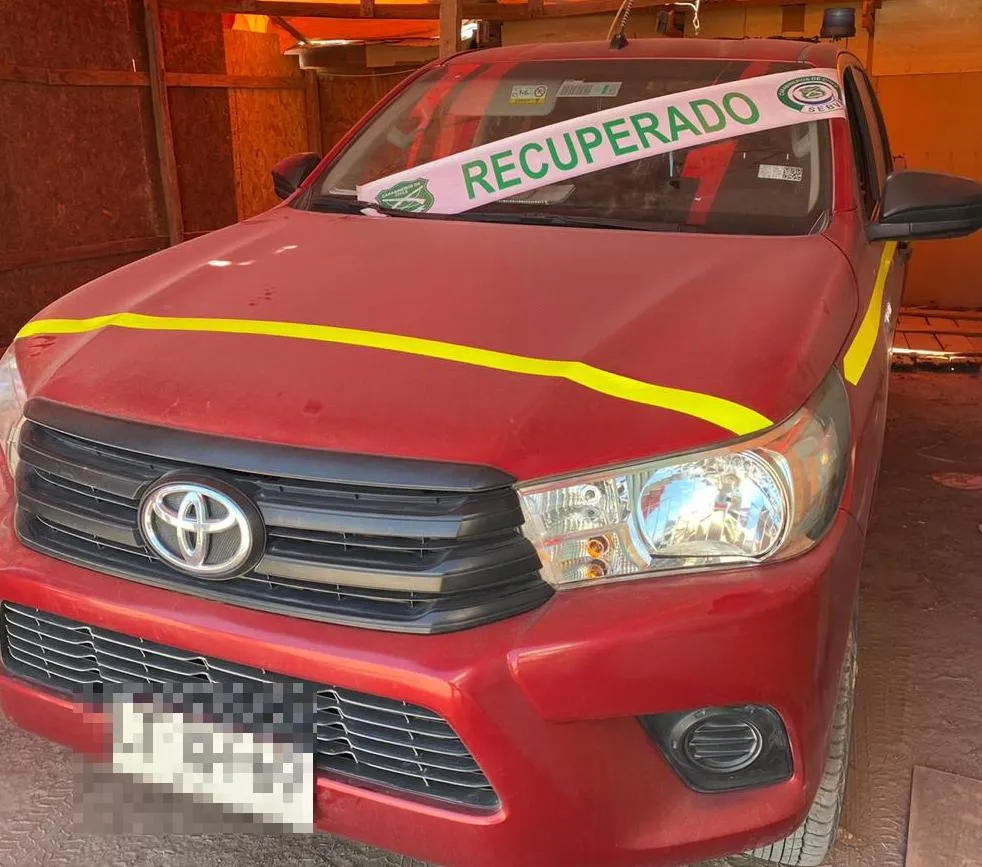 Ante esto se despliegan técnicas propias de la especialidad con el fin de confirmar fehacientemente el hecho, concretándose la detención de una mujer, chilena, de 48 años.Con este procedimiento Carabineros de la SEBV recupera dos camionetas Toyota Hilux, avaluadas en aproximadamente 45 millones de pesos, ambas con encargo vigente por el delito de ROBO desde el 17 de este mes.