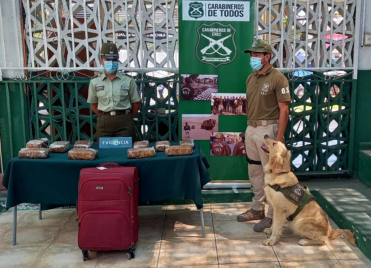 Es así como en un servicio nocturno de una de las patrullas del OS7 se evitó el tráfico de 10 kilos de marihuana, que eran trasladados al interior de una maleta que se encontraba en el sector de equipaje de un bus interurbano itinerario Iquique - Santiago.
