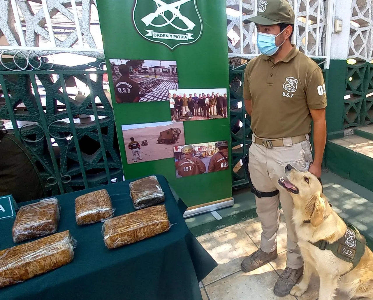 El procedimiento se concreta pasadas las 22 horas de ayer en el kilómetro 1355, en el lugar personal especializado fiscaliza una de las máquinas de transporte de pasajeros con apoyo de Fucsia que dio alerta positiva a drogas en el portamaletas ya que a pesar que la marihuana se encontraba cubierta con café, para que no fuera detectada, esto no fue impedimento para el olfato entrenado de la cariñosa golden retriever que forma parte de la patrulla canina antidrogas del OS7 Antofagasta.