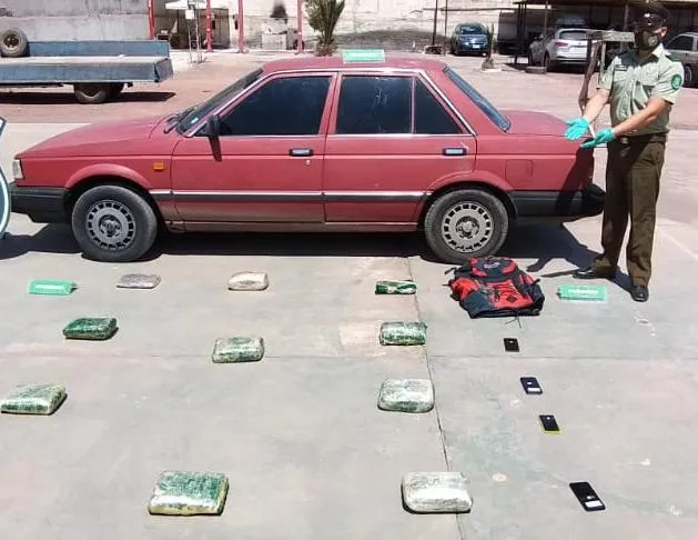 La droga se encontraba en el maletero , dispuesta en 11 paquete de similares características, correspondiente 11 kilos 390 gramos de marihuana, lo que es corroborado por la prueba de campo realizada por Carabineros de la SIP de la 1a Comisaría de Taltal.