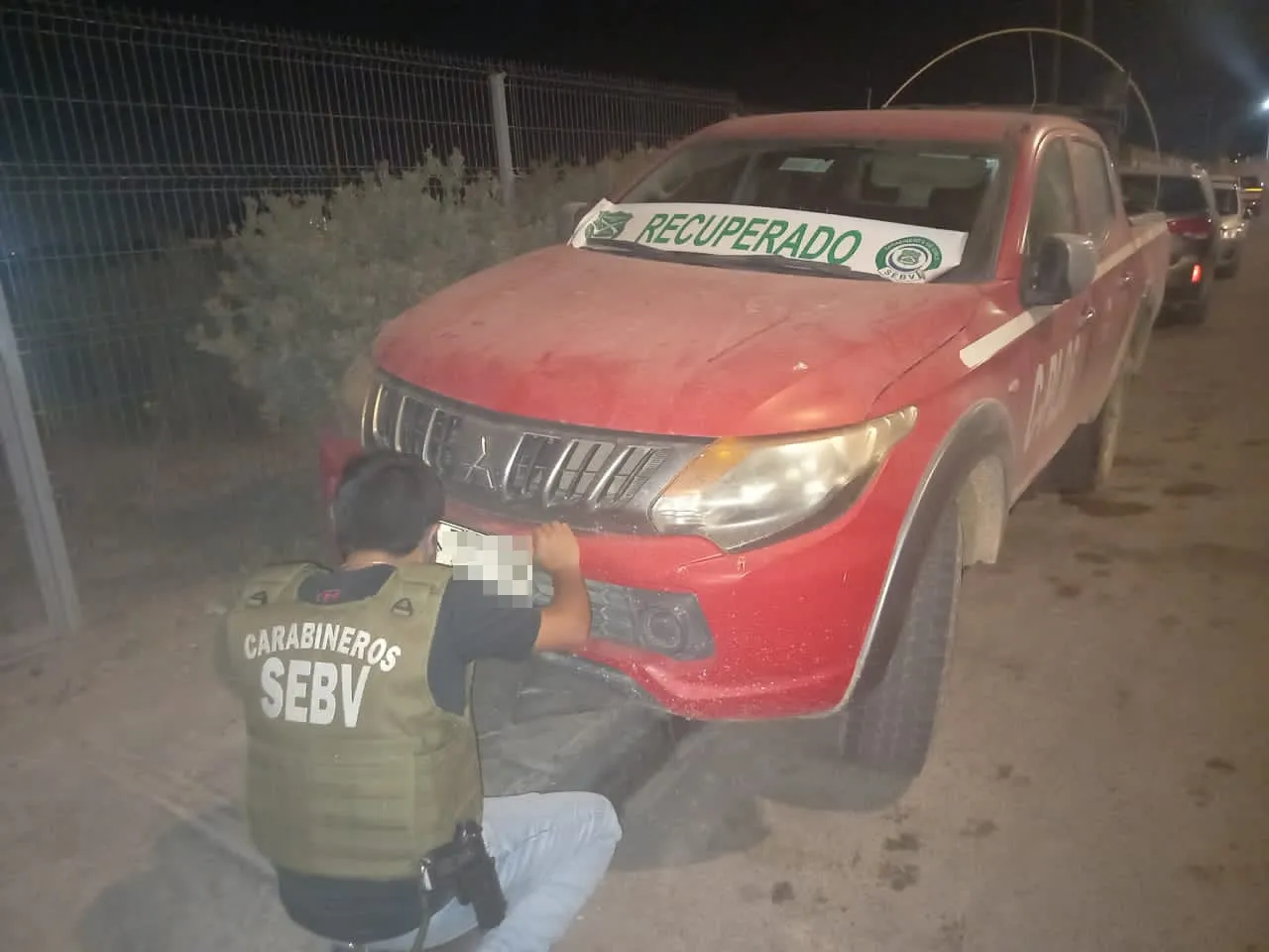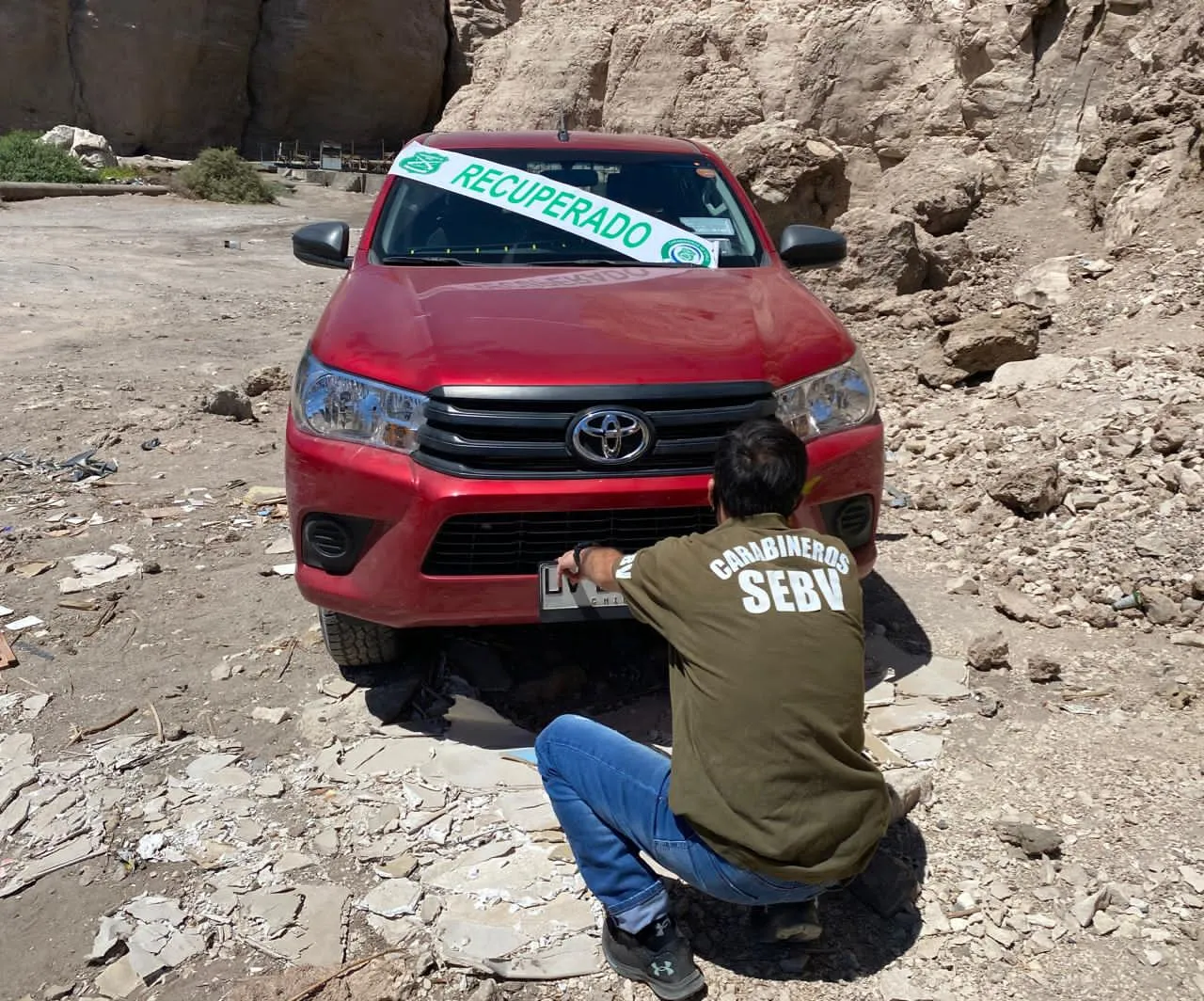 15 horas, ruta B193 sector Ojo de Opache, un llamado de la Central de Comunicaciones, CENCO moviliza a Carabineros de la SEBV hasta dicho sector manteniendo información que una camioneta Toyota Hilux con encargo por Robo con Intimidación del 9 de marzo.Al llegar al lugar personal policial especializado realiza un recorrido por las inmediaciones concretando el hallazgo de la camioneta que es entregada a su propietario.