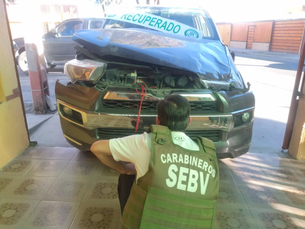 18:17 horas, Pasaje Cesareo Aguirre, mientras Carabineros de la SEBV realizaba diligencias propias de la especialidad, en direccion al poniente, se concreta el hallazgo de un Toyota 4Runner, con encargo de Robo con Violencia, desde el 7 de marzo.Vehículo es devuelto a su dueño.