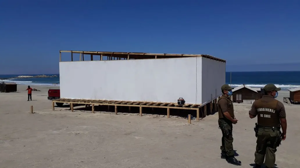 Tras haber hecho caso omiso a la notificación previa de desalojo, se materializó la orden del Gobierno Provincial de Antofagasta. Los ocupantes de los dos inmuebles fueron conminados a desarmar por su cuenta las construcciones, de lo contrario, serían destruidas con maquinaria pesada y los materiales trasladados hasta el vertedero de Mejillones.