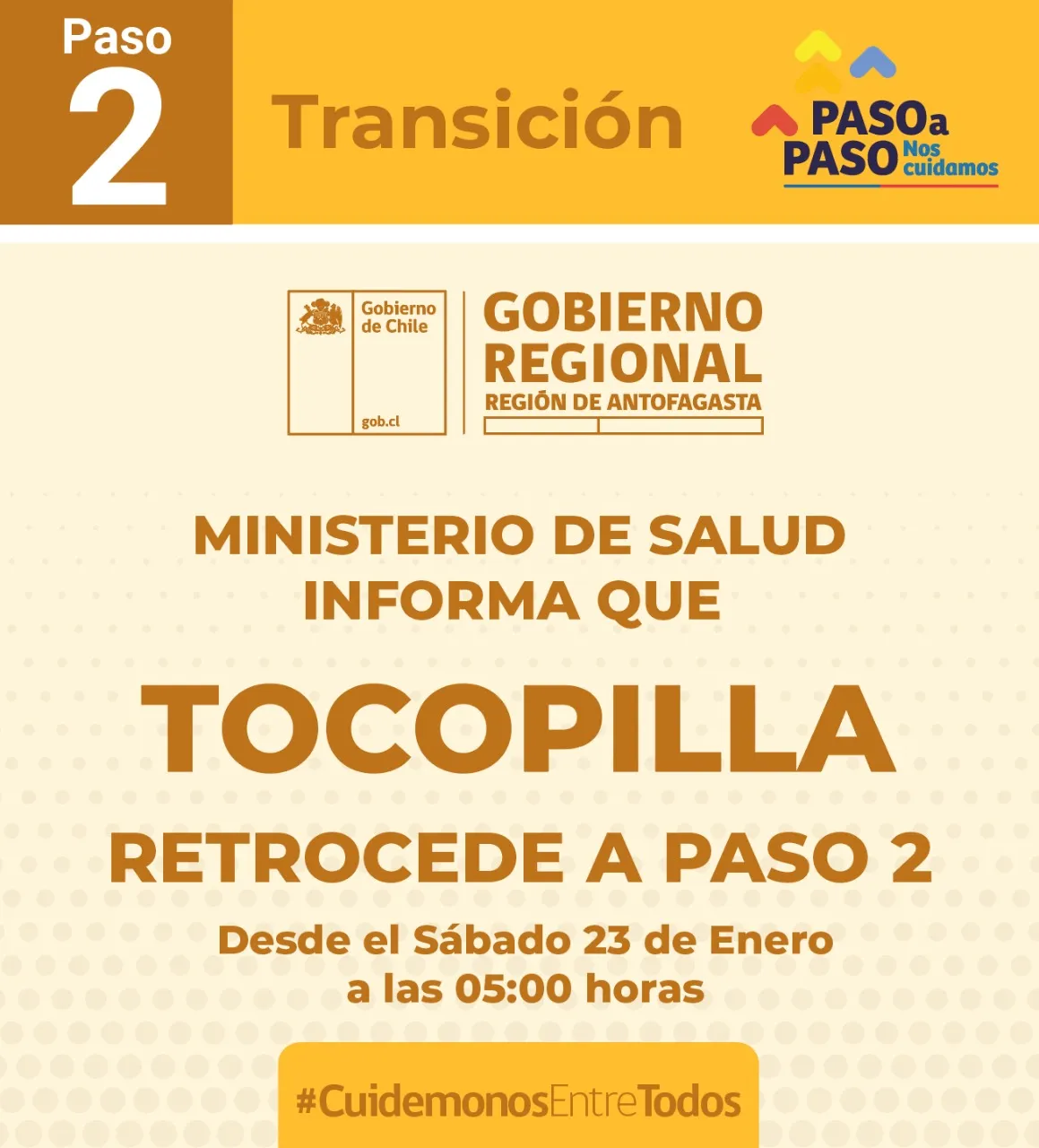 TOCOPILLA RETROCEDE A FASE 2 DESDE EL SÁBADO 23 DE ENERO A LAS 05:00 HRS.