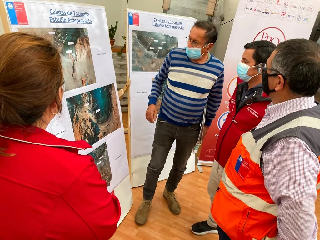 Con el objetivo de proyectar el desarrollo de distintas soluciones de infraestructura marítima para el embarque y descarga de productos de los pescadores de las caletas rurales de Tocopilla, el Ministerio de Obras Públicas a través de la Dirección Regional de Obras Portuarias entregó nueve anteproyectos para futuras obras, según informó el seremi de Obras Públicas, Patricio Labbé Lagunas.