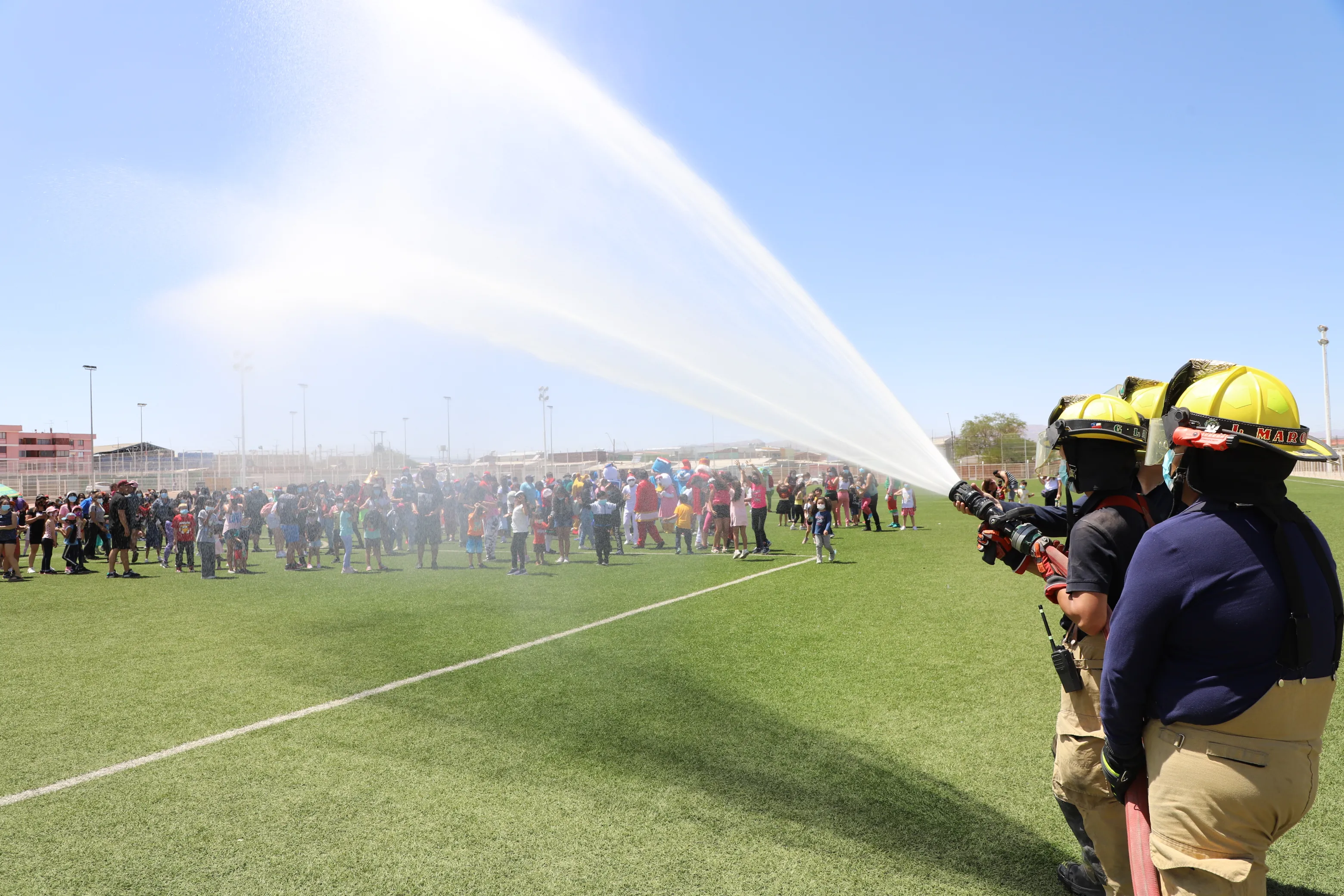 Será en este sentido, una gran fiesta de agua a desarrollarse en distintas canchas de pasto sintético de la comuna, en donde además del apoyo de los carros de Bomberos, se considera la instalación de juegos inflables de agua, shows infantiles con juegos y concurso, y más.