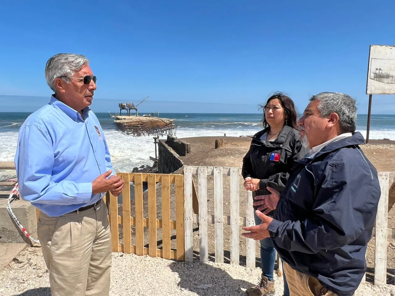Seremi MOP y alcalde de Taltal inspeccionan daños en Muelle Histórico tras desplome por marejadas.