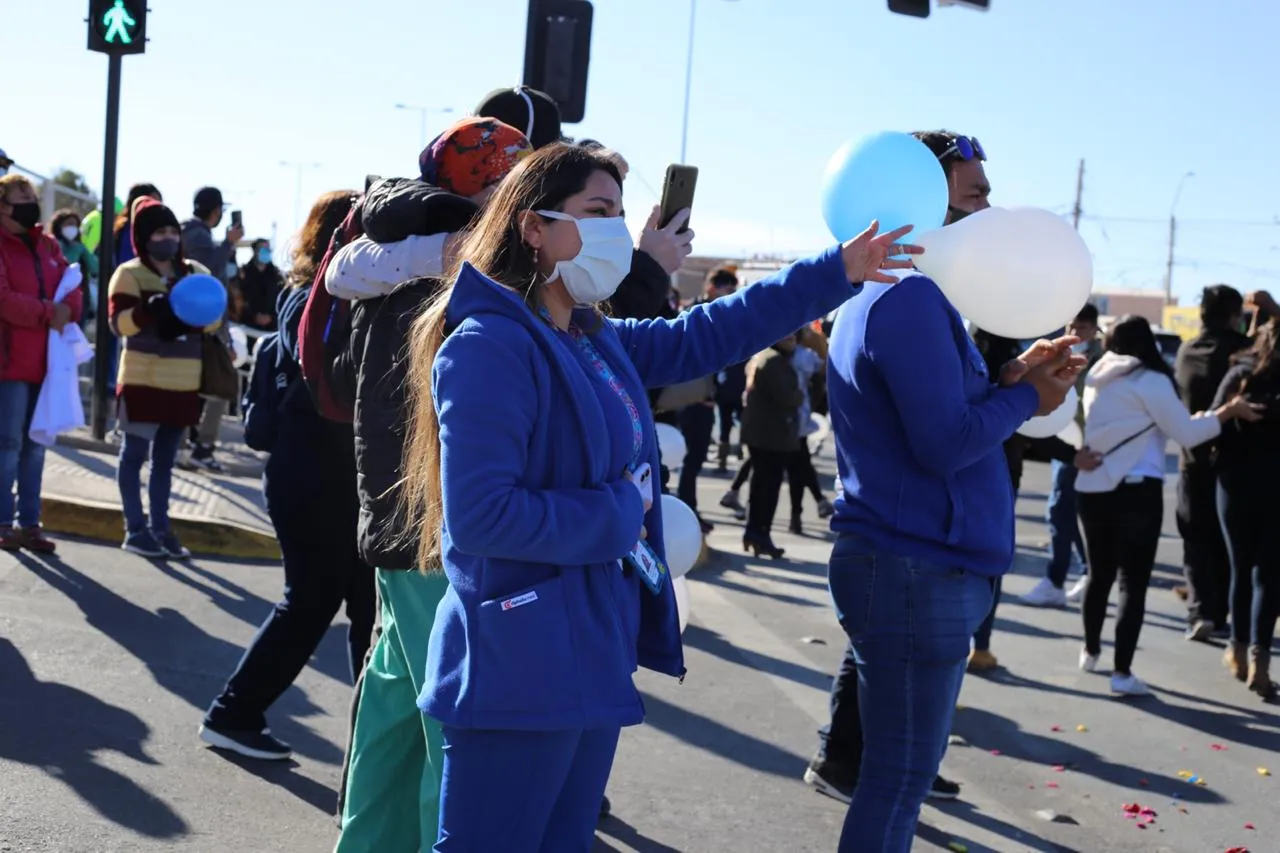 Con globos blancos y celestes, característico de los técnicos en enfermería, con las ambulancias del Samu, que con sus bocinas marcaban la presencia más viva que nunca de un compañero y con las vestimentas de cada una de las profesiones o oficios que son parte del hospital de Calama, la familia HCC le dijo hasta siempre a Carlos.