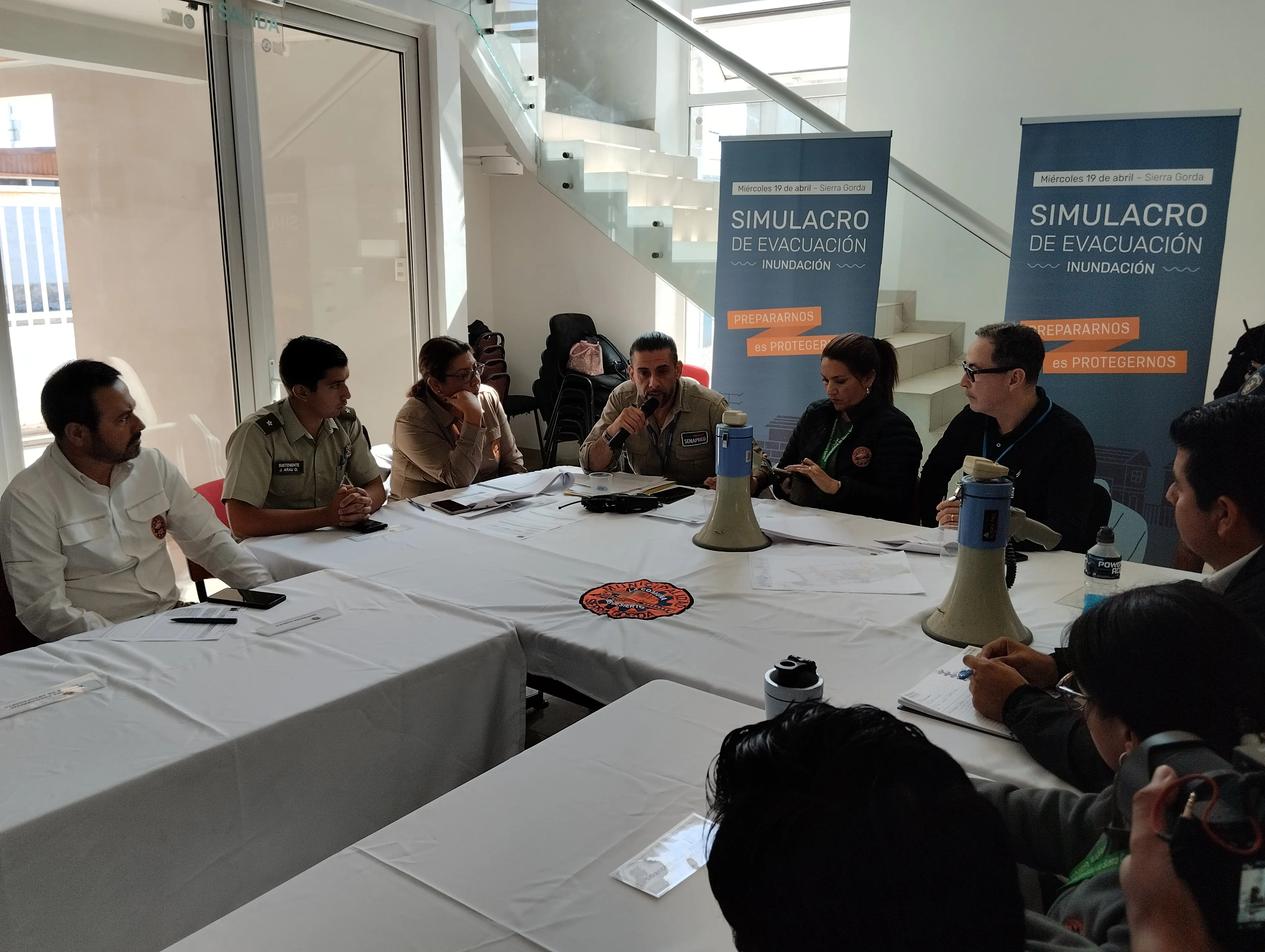 El ejercicio preventivo fue liderado por la Municipalidad de Sierra Gorda, a través de su alcaldesa, Deborah Paredes, y el director regional del Servicio Nacional de Prevención y Respuesta ante Desastres, SENAPRED, Ricardo Munizaga. Lo anterior en el marco de un trabajo público y privado donde participaron representantes de las empresas mineras que mantienen sus faenas en la comuna, además de Bomberos, personal de Carabineros y representantes de la Asociación de Municipalidades de la Región de Antofagasta, AMRA.