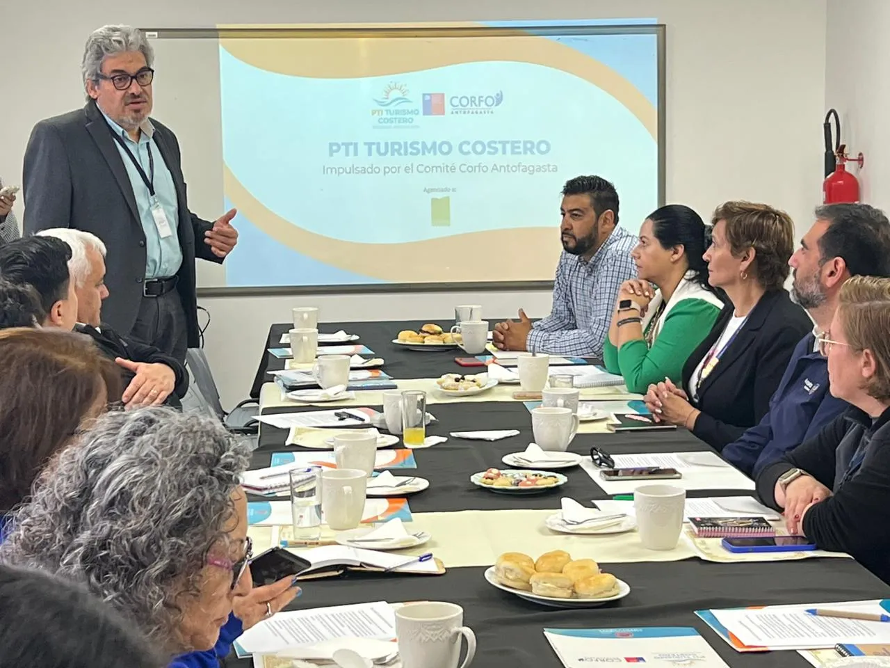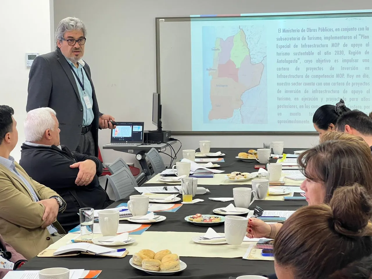Con el objetivo de presentar los proyectos del MOP relacionados al borde costero y al turismo, el seremi de Obras Públicas, Pedro Barrios, participó de una sesión del PTI de Turismo Costero, el cual contó con la presencia de diferentes autoridades, como la seremi de Economía, María Teresa Véliz, el director regional de Sernatur, Mauricio Soriano, la directora ejecutiva del Comité Corfo Antofagasta, Melissa Gajardo, entre otros asistentes representantes de la academia y organizaciones sociales de las diferentes comunas.