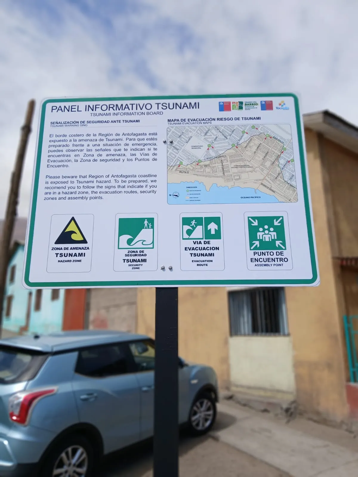 Los vecinos del Barrio “Costa Norte” de Tocopilla, intervenido por el Programa Minvu “Quiero Mi Barrio”, inauguraron su Obra de Confianza: “Instalación de señaléticas viales y de evacuación por rie...