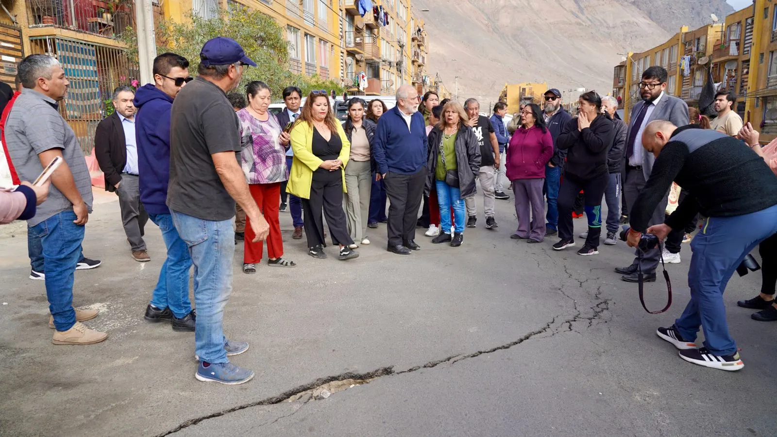 El ministro de Vivienda y Urbanismo, Carlos Montes; junto al gobernador regional de Antofagasta, Ricardo Díaz; la seremi Minvu de Antofagasta, Paula Monsalves; el director del Serviu regional, Víctor Gálvez; y el jefe de la División Técnica del Minvu, Marcelo Soto, presentó esta tarde el plan de intervención del conjunto habitacional Alto Covadonga, que actualmente mantiene un deterioro significativo por fisuras y hundimientos iniciados en 2017, para así dar una solución definitiva a sus habitantes.