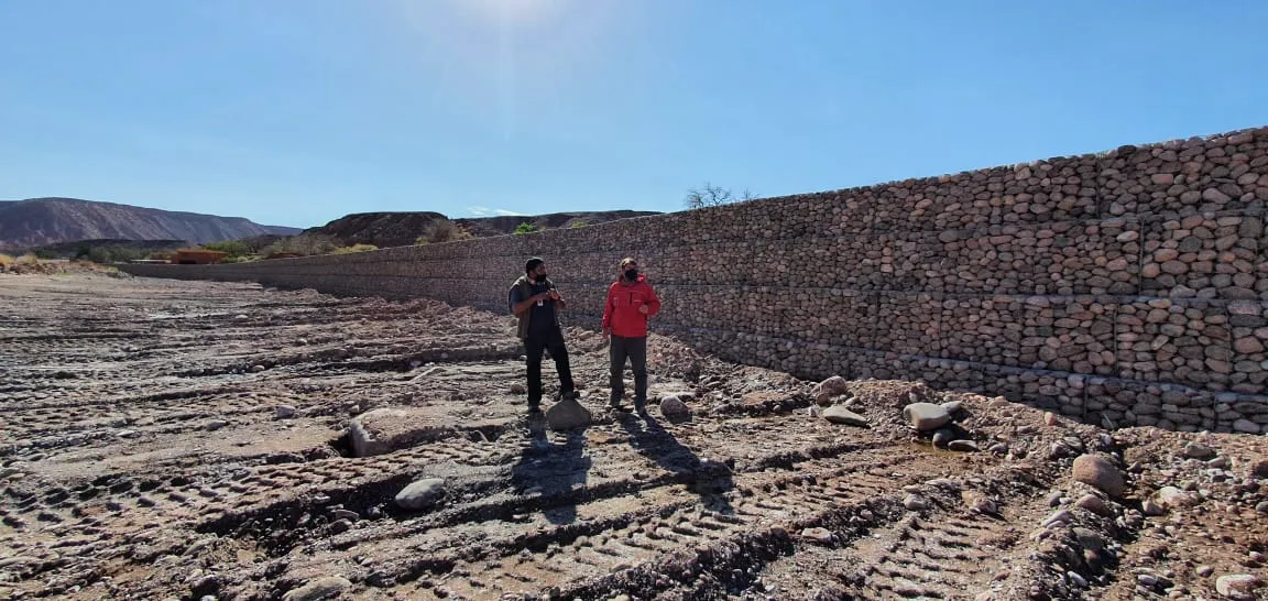 La autoridad detalló que la conservación que está en ejecución alcanza un 75% de avance y que corresponde a la construcción de gaviones en el cauce del río en el sector de Catarpe, peraltes de gaviones en Quitor y Conde Duque, instalación de gaviones nuevos en Caracoles y mejoramientos de cabezales en diversos sectores.